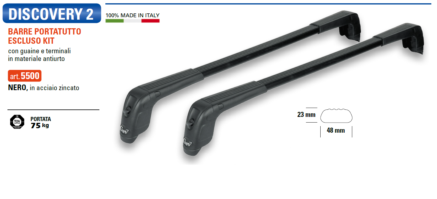 Barre portatutto per autoveicoli senza barre longitudinali.